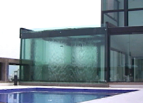 Cortina d'água em clarabóia de vidro Dá privacidade e conforto térmico ao ambiente |